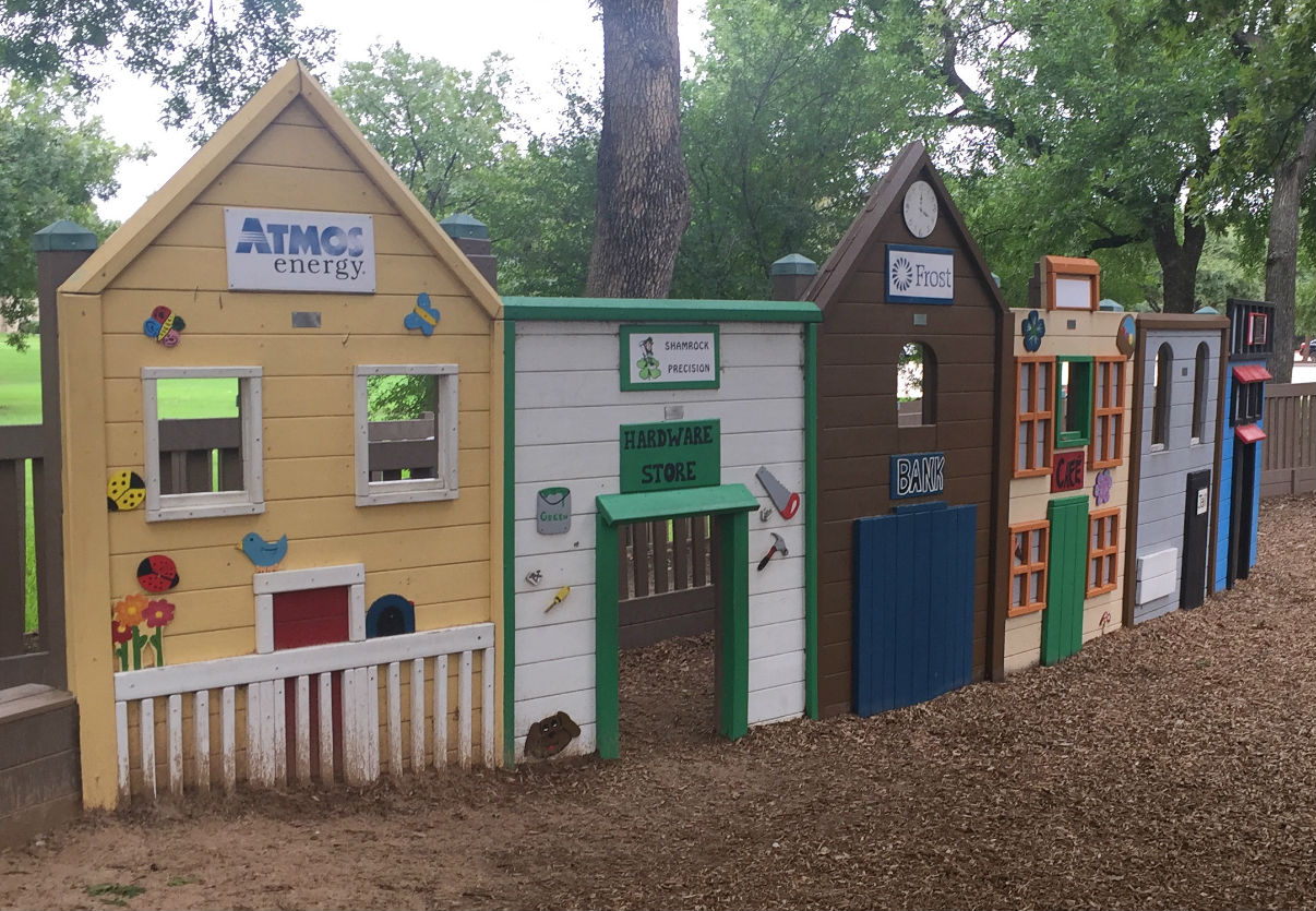 Andy Brown East Park is a very large outdoor playground with TONS of shade trees. Kids love this park because it’s huge and there’s SO much to explore. Inside the almost fully enclosed playground, there are lots of different winding paths, steps and turrets. Other areas include: rock climbing walls, many slides, tire swings, tunnels, swings and monkey bars. A little music section in the center of the main playground is also a fun, interactive addition.