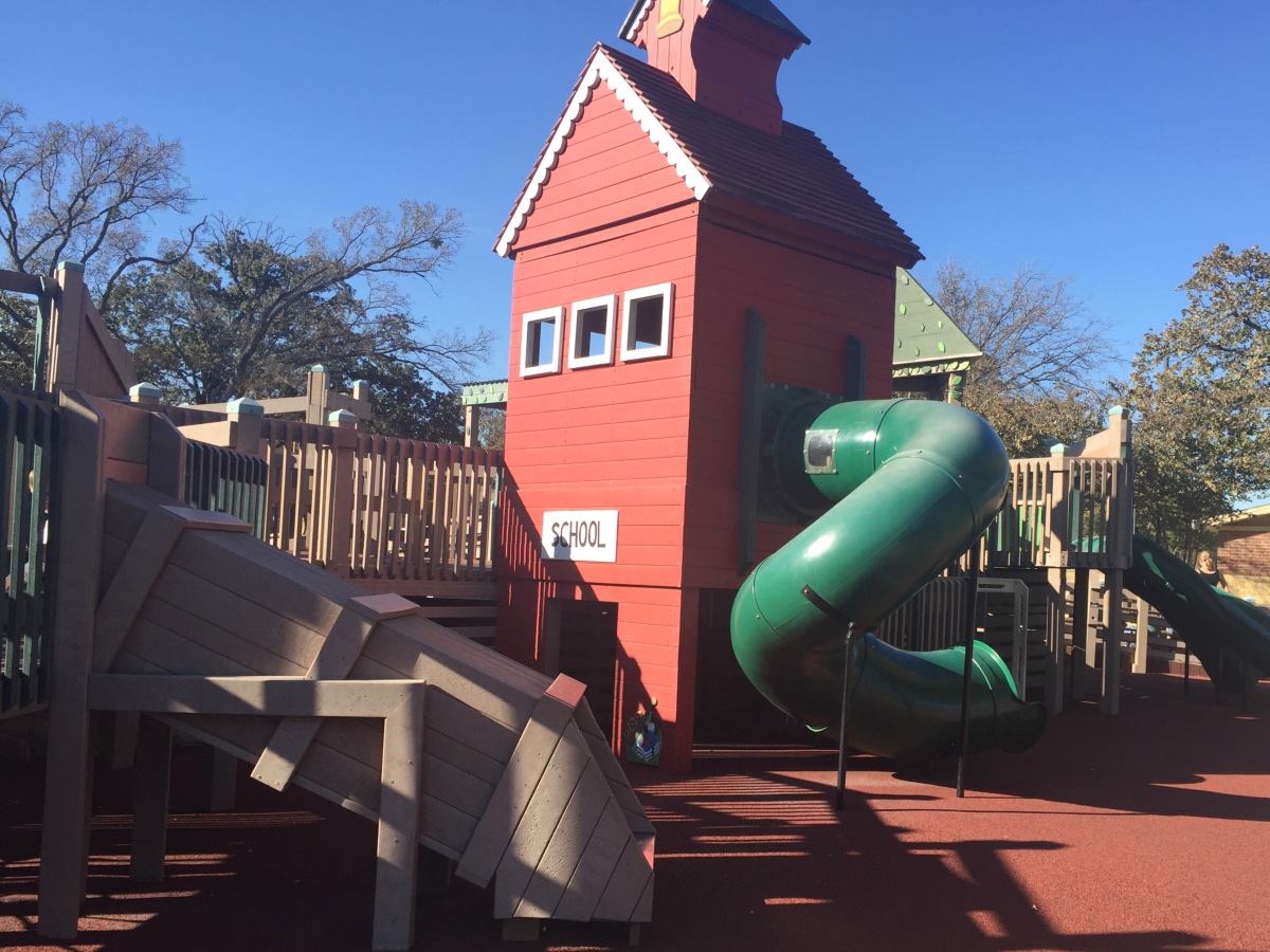 Heritage Park and playground is tucked away amidst a wooded area in Flower Mound. It’s uniquely designed around historical, western-themed buildings. The play equipment made to look like you’re stepping back in time, which is so fun for the imagination!