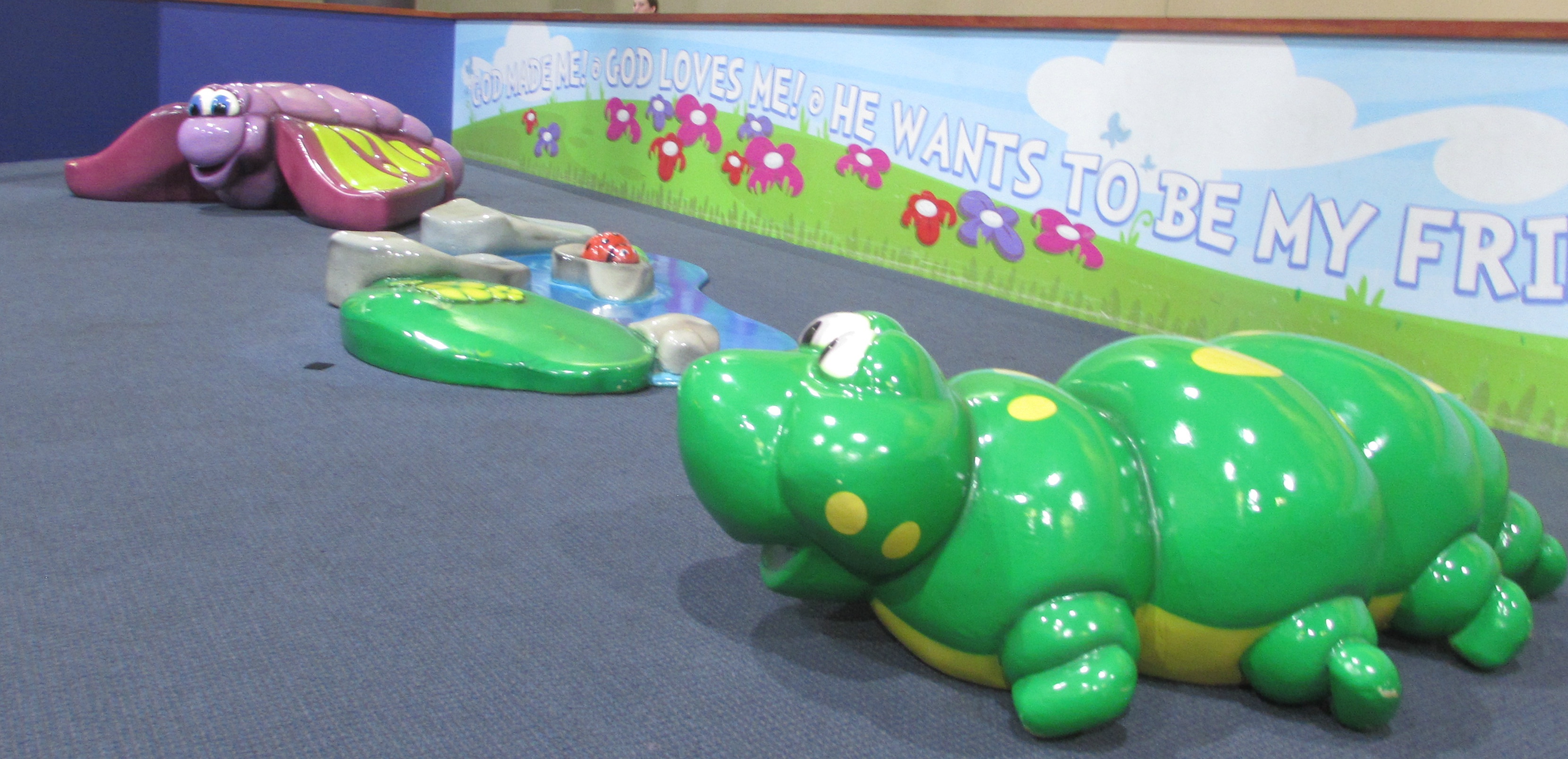 For toddlers and little ones under 3: there is a little “Bugs” play spot that is right next to the Tubes, which is designated for younger children under 36 inches. This Bugs area is carpeted and cushiony, and has a few over-sized bugs that little ones can play on and climb around. However, it is not enclosed, so if you have multiple little ones that like to run, this spot may not be doable for extended periods of time! Thankfully, the staff at Irving Bible Church is very friendly and understanding if your little one wants to explore a little bit in other parts of the main lobby area.